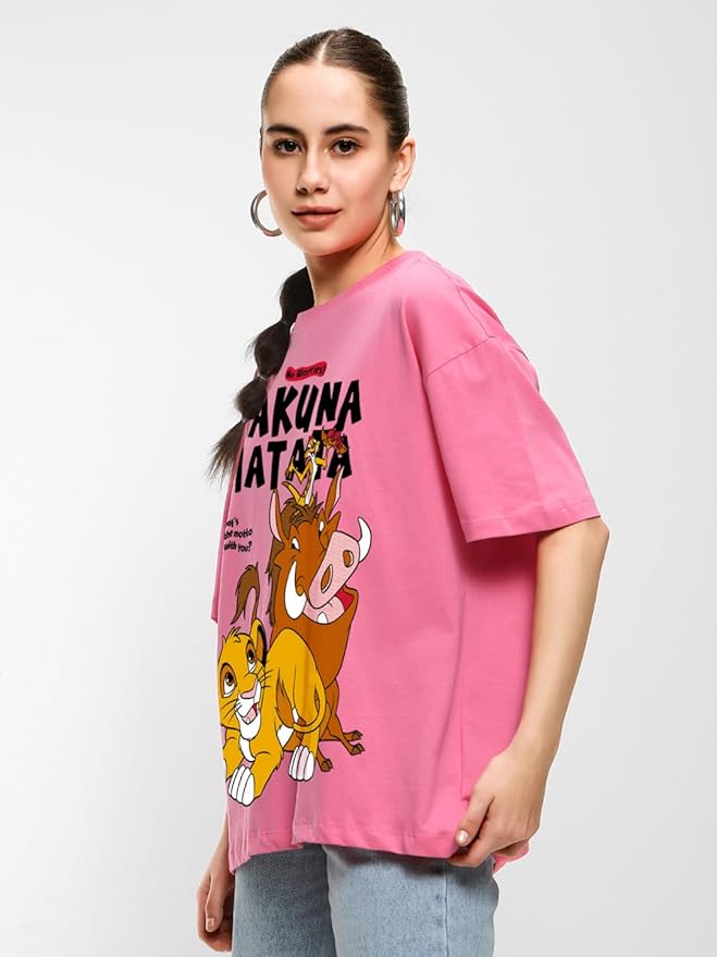 Bewakoof Official Disney Merchandise Hakuna Matata Women’s 100% Cotton Graphic Print Oversized Fit Round Neck T-Shirt
